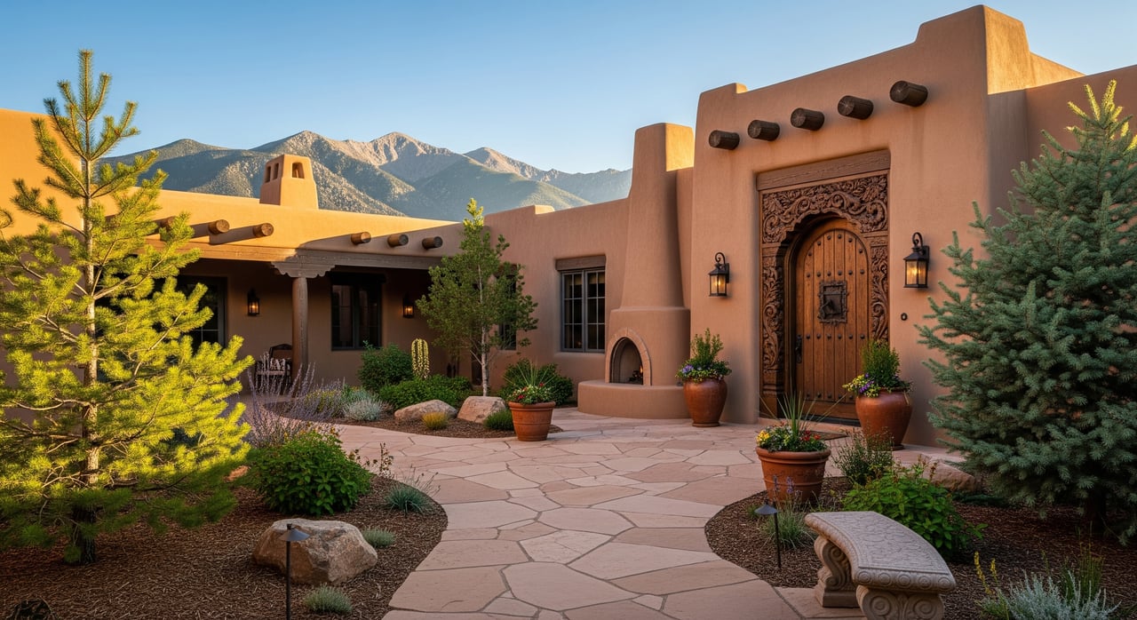 On Tano Road, you will often see Pueblo Revival or Territorial-style homes with earthen-colored stucco, vigas, and portals. Modern regional designs are also common, blending clean lines with traditional materials. Secondary features can include kiva fireplaces, latillas, courtyards, and detached garages or guesthouses.