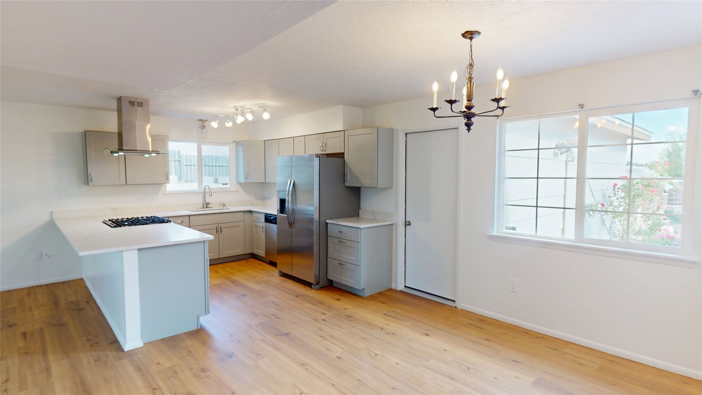 Charming and updated, this spacious 3-bedroom, 1 and 3/4-bath home offers comfort and convenience just 15 minutes from the Santa Fe Plaza. Featuring an open and bright floor plan, this home includes a generous primary bedroom, abundant storage, and a 2-car garage. Enjoy the beautiful front and back yards adorned with gorgeous roses, and relax under the inviting covered porch. Recent updates add to the appeal: new Frigidaire appliances with overhead vent, luxury vinyl plank flooring, granite countertops, a new water heater, a new central heating system. A new roof was completed in 2022. Centrally located near schools, shopping, and more, this home blends modern touches with classic Santa Fe charm. Don't miss this opportunity! Owner/ Broker