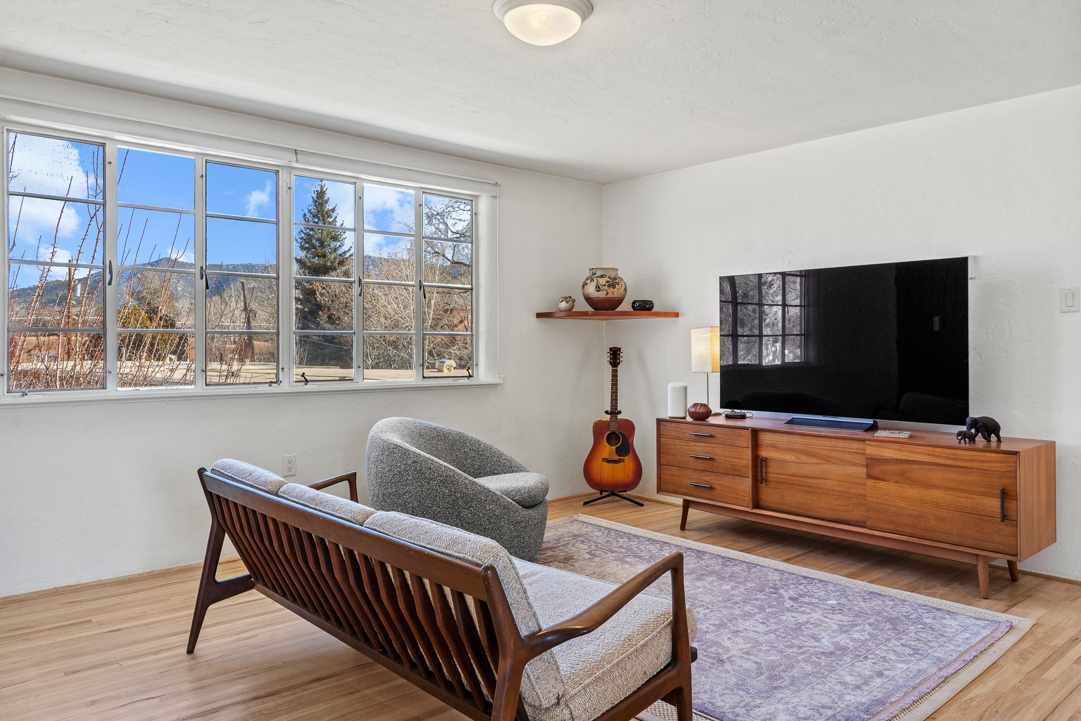 Nestled behind a white picket fence on Garcia Street, Casa Barbara is one of those charming Historic Eastside properties that exudes the essence of "old Santa Fe." This 1951 territorial-style garden-courtyard compound is listed on the NM historic preservation list, and it's exactly the kind of place Eastside buyers wait for. This extensively upgraded true two-bedroom unit boasts a prime location in the Historic Eastside, offering second-floor views of the lush landscaping and Sangre de Cristo Mountains. The interior features beautiful original red oak floors, a fully renovated bathroom, and an updated kitchen that combines charm with modern convenience. Outside, the meticulously maintained gardens provide a peaceful retreat among the apricot trees, aspens and lavender. Conveniently located within walking distance of Canyon Road, Acequia Madre, and the Plaza's galleries, museums, dining, and coffee shops, this unit also includes a covered carport, unit-owned storage, and on-site laundry facilities with the option to install in-unit laundry if desired. More new upgrades include updated bathroom and kitchen plumbing and restored original window hardware. The well-managed HOA has also made significant improvements to the property including new roofs on the condo, carport, and storage units, new gutters, and repairs to the front fence and sidewalk. With its move-in ready condition and potential as a primary residence or rental investment, this unit at Casa Barbara offers a unique opportunity to experience the charm of Santa Fe's Historic Eastside.
