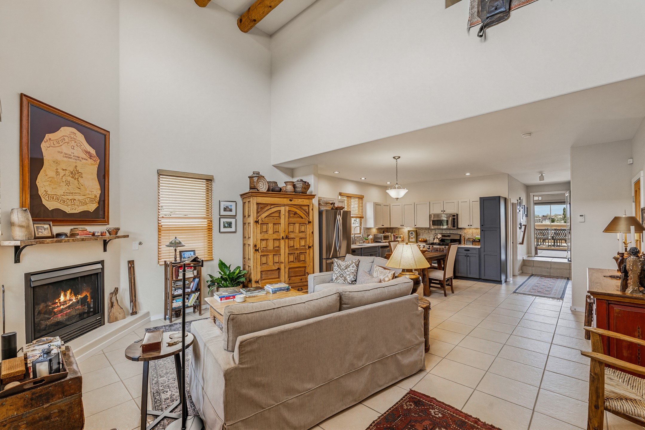 Welcome to this light-filled 4-bedroom, 3-bath townhome nestled in the highly sought-after Aldea community -- where Santa Fe's natural beauty meets effortless, elegant living. With over 2,000 sq. ft. of thoughtfully designed space, this home impresses from the moment you step inside, featuring soaring ceilings with rustic vigas, rich tile floors, and a cozy gas fireplace that sets the perfect ambiance. The expanded sunroom and family room flow seamlessly onto a spacious deck, where breathtaking Sangre de Cristo mountain views steal the show -- an idyllic setting for morning coffee or sunset evenings with friends. The kitchen is equipped with stainless steel appliances and tile countertops, combining style and everyday functionality. A conveniently located main-level bedroom and full ba...